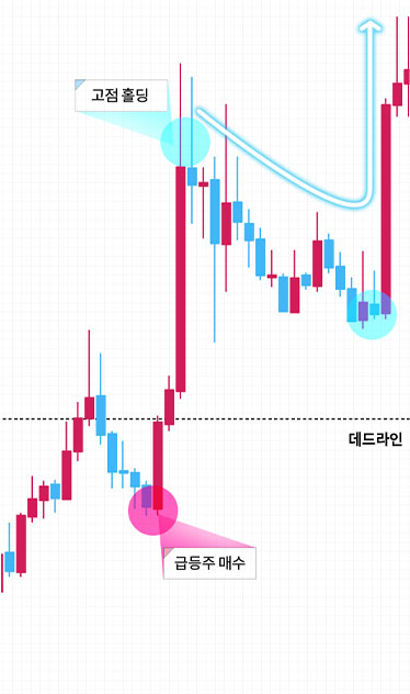 매수중인 코인이 상승 추세가 시작됨에 따라 매수중인 코인을 상승지점이 최고점을 인식 후 하락 전환하는 포인트에서 매도를 하여 수익을 극대화 합니다.