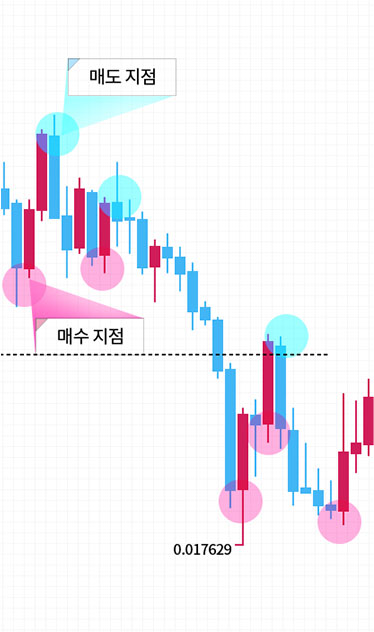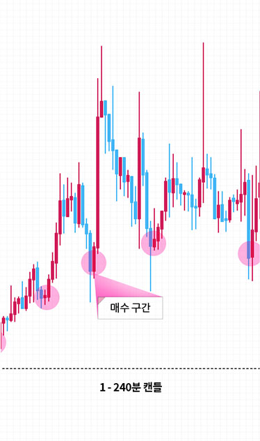 하락이 끝나는 시점에서 각종 보조지표와 과거 A.I Big Data를 분석하여 상승시점을 포착 후 매매합니다.